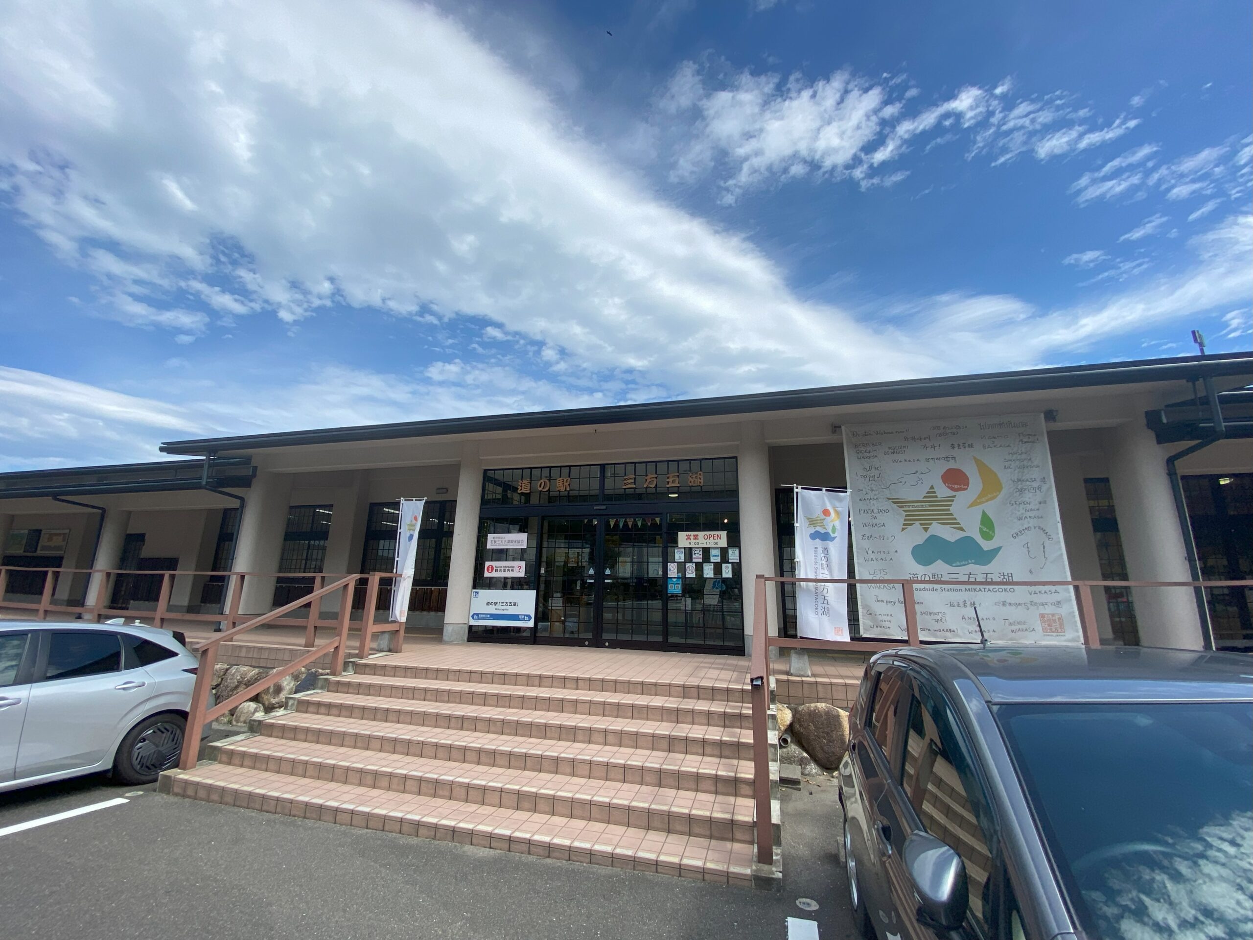 今回は「道の駅 三方五湖」へ車で立ち寄ってまいりました。三方五湖は、海と山に囲まれた穏やかな湖の集まりで、美しい景観となっています。その湖のほとりにある道の駅は、休憩所としての機能はもちろん、地域ならではの食や文化、自然体験まで楽しめる魅力にあふれた場所でございました。
