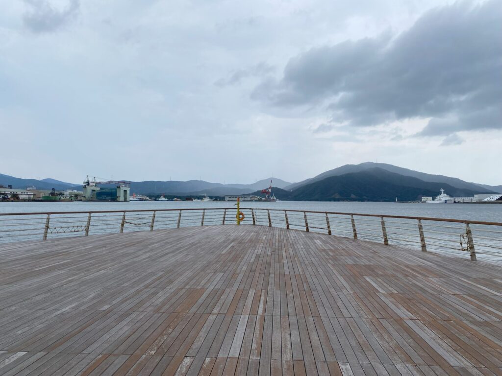 特に船首をイメージした突き出たデッキからは港の景色を一望でき、写真撮影にもぴったりです。海風を感じながらベンチでひと息つくだけでも、旅の疲れが癒やされます。