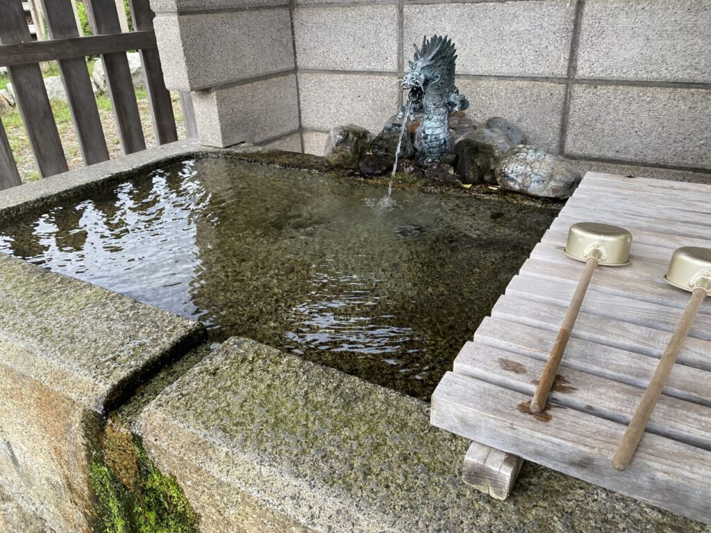 勢いよく流れ出る水の音が、境内に心地よい清涼感を与えてくれます。