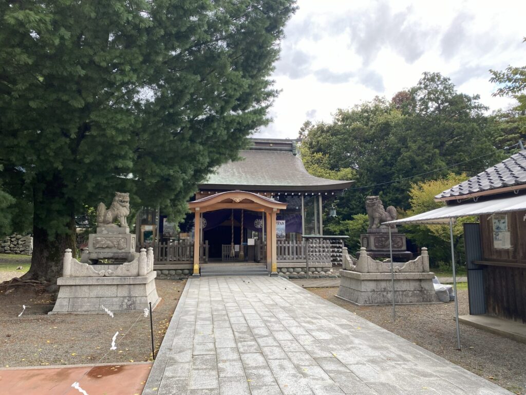 車で行く場合、神社前の駐車スペースを利用できますが、途中の道がやや狭いため運転に少し注意が必要です。