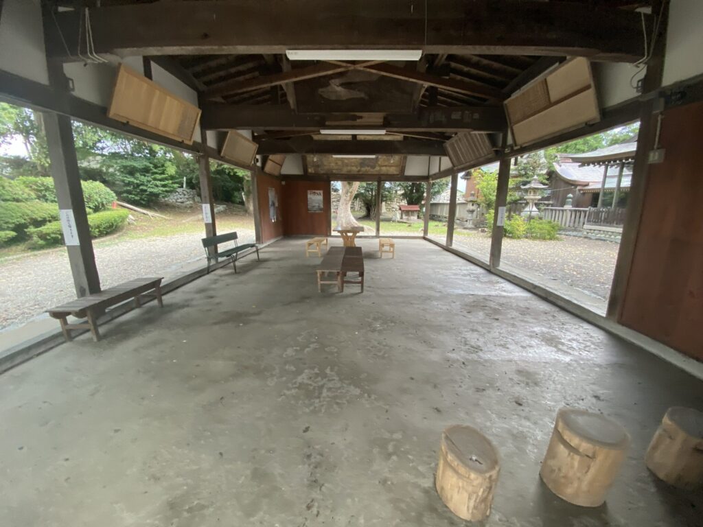 屋根付きの建物の下には椅子が並べられており、参拝の合間に少し休憩するのにちょうど良い場所。木漏れ日の中でひと息つく時間が、なんとも穏やかで贅沢に感じました。