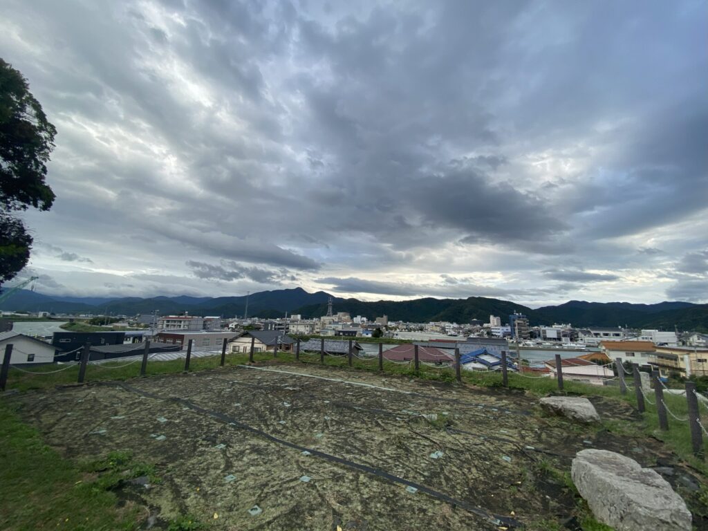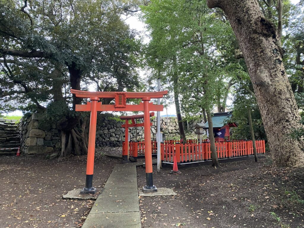城の遺構と神社が共存している珍しい景観で、まさに“歴史の重なり”を感じられる場所です。晴れた日には遠くに海も見え、過去と現在が穏やかに交わるような風景が広がっていました。