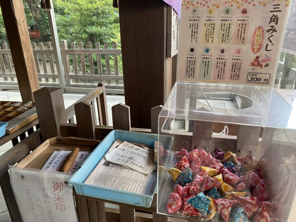 社務所の窓口近くに置かれており、初穂料は賽銭箱に納めるスタイル。